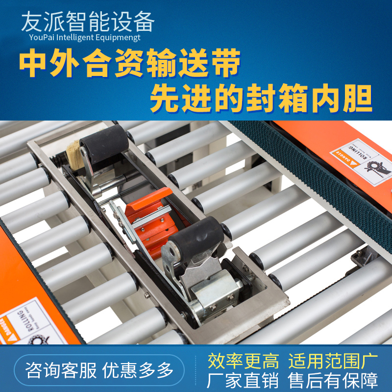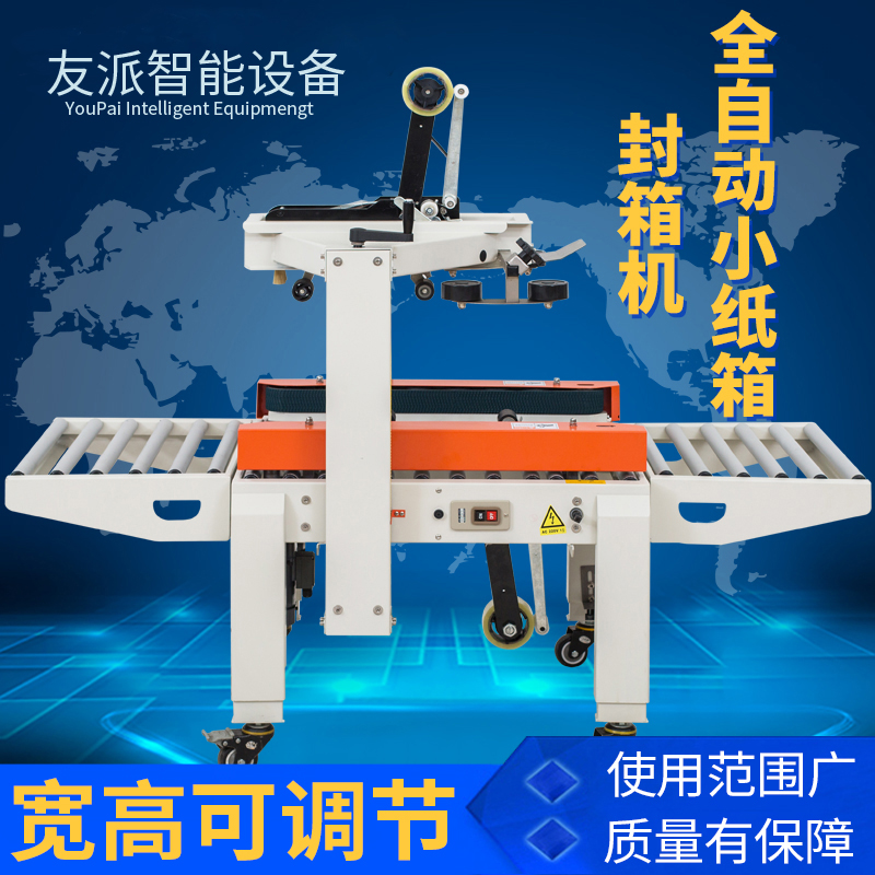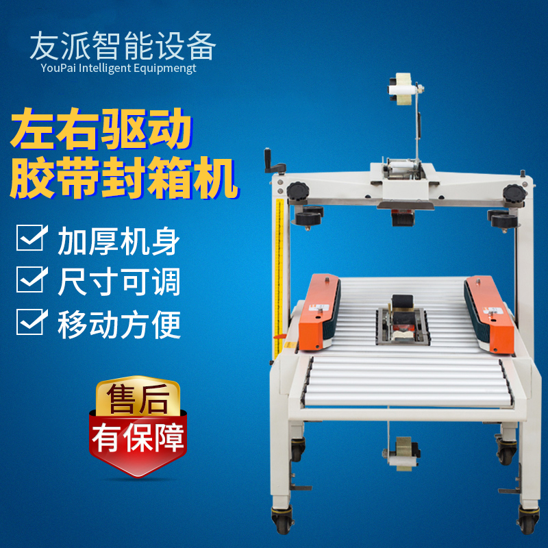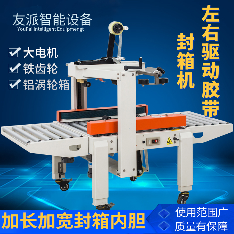 友派FXC-5050左右驅(qū)動(dòng)封箱機(jī)是以BOPP膠紙為封箱材料,可同時(shí)對(duì)紙箱進(jìn)行上下“一”字型封箱,兩側(cè)馬達(dá)驅(qū)動(dòng)皮帶自動(dòng)校正、輸送紙箱,封箱時(shí)快速平穩(wěn),適用于較重較寬紙箱。兩側(cè)輔助輪協(xié)助機(jī)器封箱時(shí)中縫集中不開裂。臺(tái)面高度、紙箱寬度高度可自主調(diào)節(jié),簡(jiǎn)單實(shí)用。造型典雅大方,配備刀片防護(hù)裝置,避免操作時(shí)意外刺傷。機(jī)件穩(wěn)固耐用,使用壽命長(zhǎng)。機(jī)身自帶四個(gè)高強(qiáng)度剎車輪,換位工作非常方便。...
