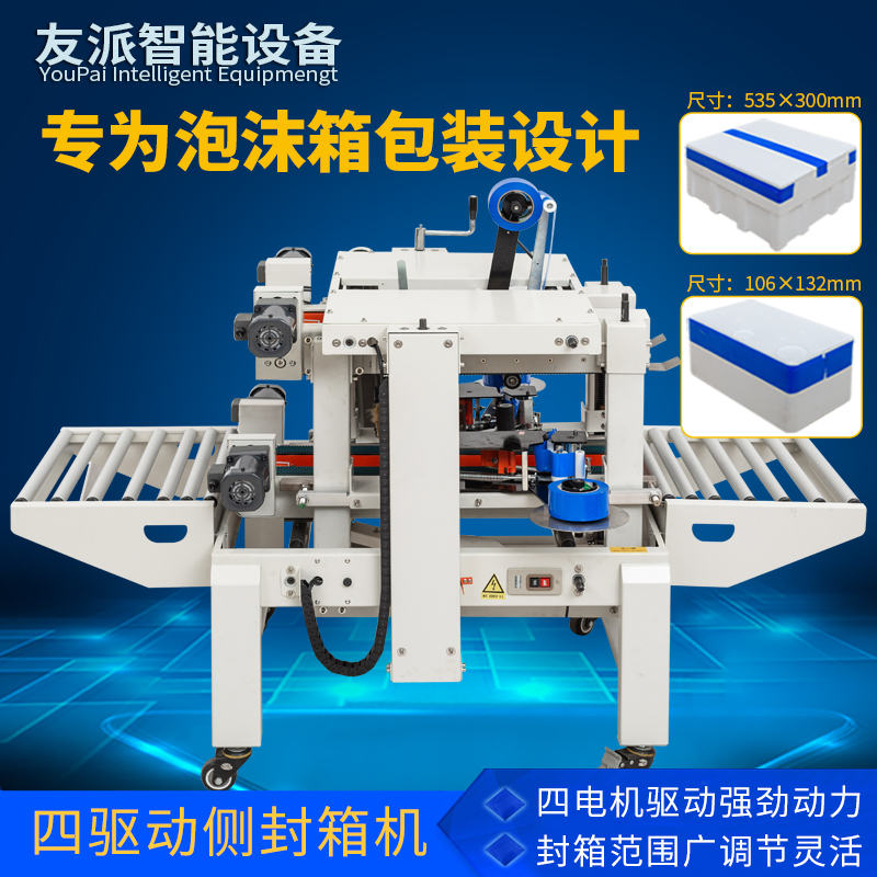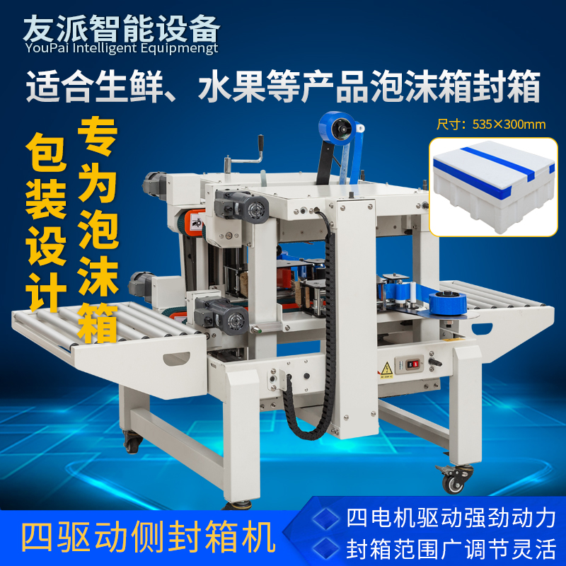 友派DFXA5030C側(cè)封封箱機(jī)專為泡沫箱包裝設(shè)計(jì),適合生鮮,水果等產(chǎn)品泡沫箱封箱。設(shè)備采用即貼膠帶封口,經(jīng)濟(jì)快速,容易調(diào)整,可一次完成左,右,上封箱動(dòng)作封小箱時(shí),拆卸上封箱頭更加方便實(shí)用。...