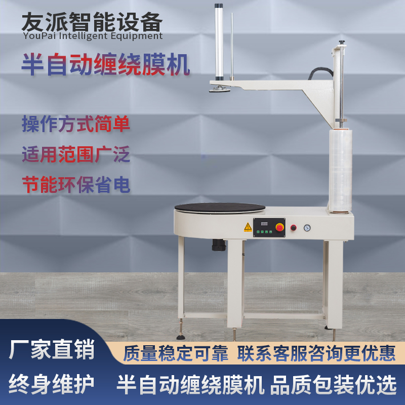 友派DBC800S半自動氣動纏繞機,自動氣缸壓箱,電商物流出口繞膜包裝機裹包機薄膜打包機...