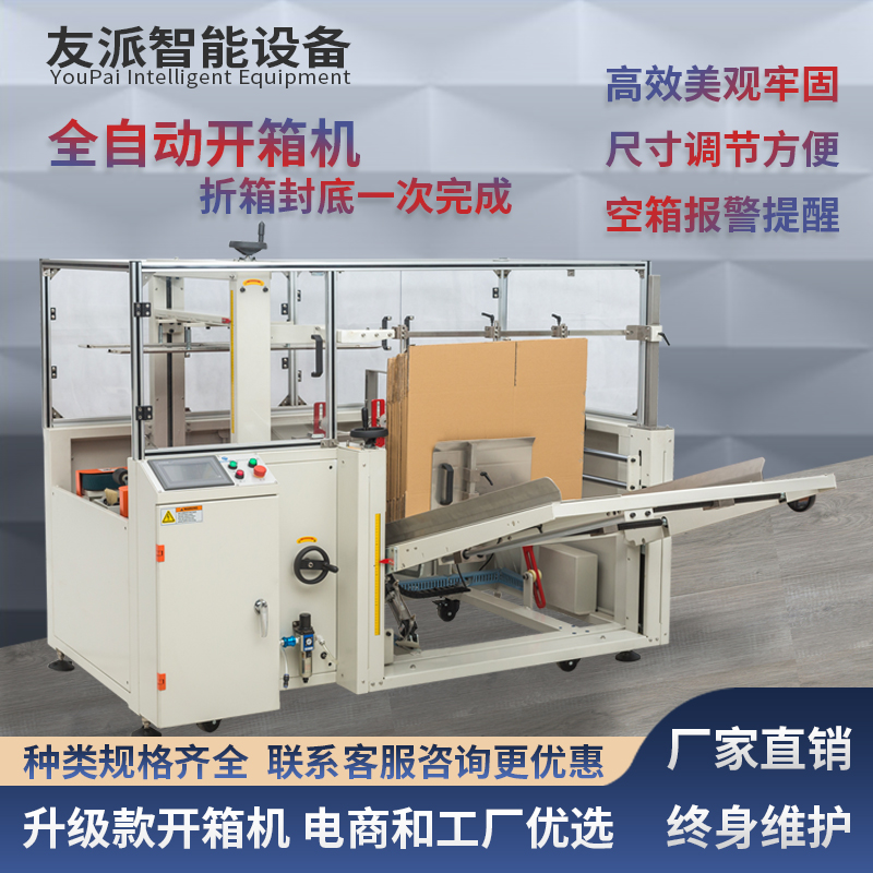 友派DKX4540開箱機(jī)適合1-6電商郵政紙箱開箱封底,每分鐘開箱8-12個(gè)。廣泛應(yīng)用在食品、飲料、化妝品、家用電器、書刊、紡織、百貨、化工等行業(yè)。...